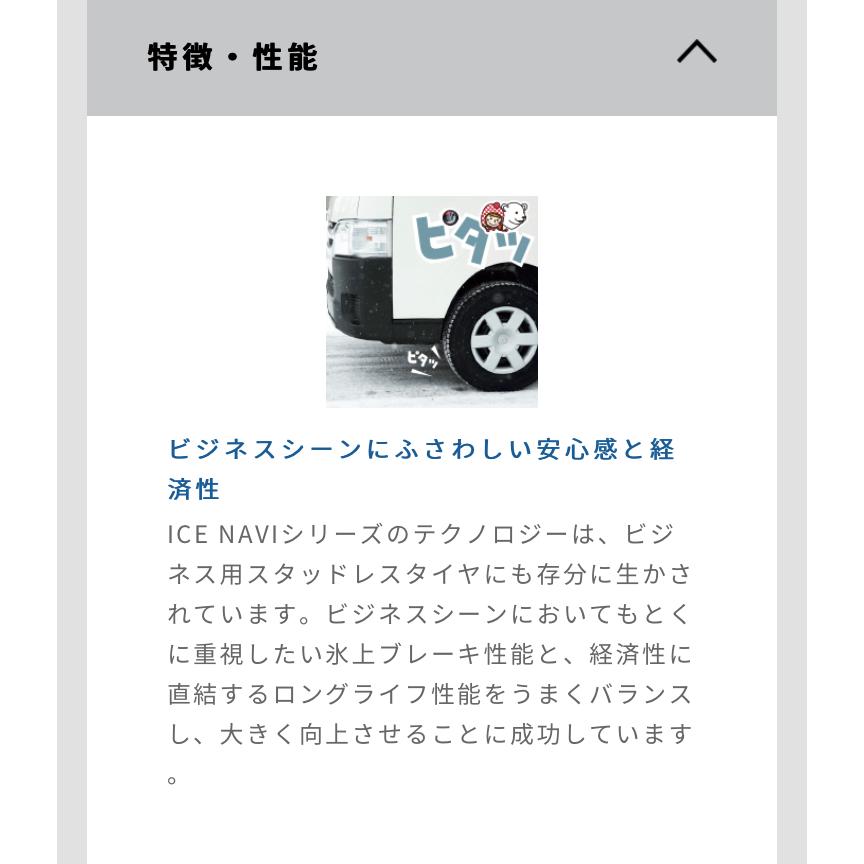 【ICE NAVI CARGO】はVAN専用スタッドレスタイヤに求められる機能をうまくバランスしたスタッドレスタイヤです。