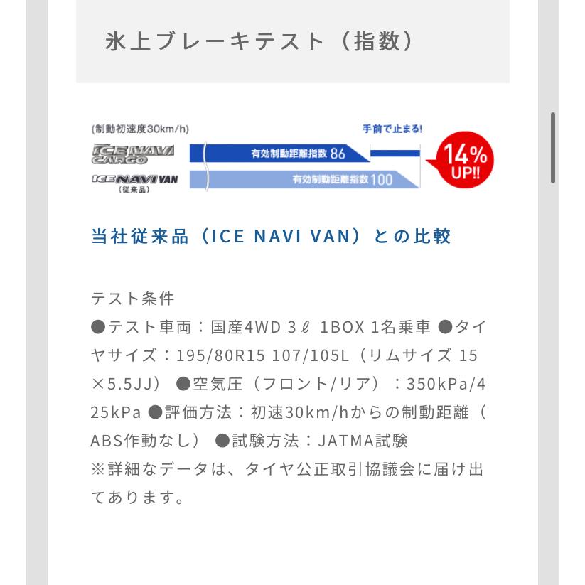 これらの改良により従来品(ICE NAVI VAN)との比較では氷上ブレーキ性能が14%も向上していますよ。